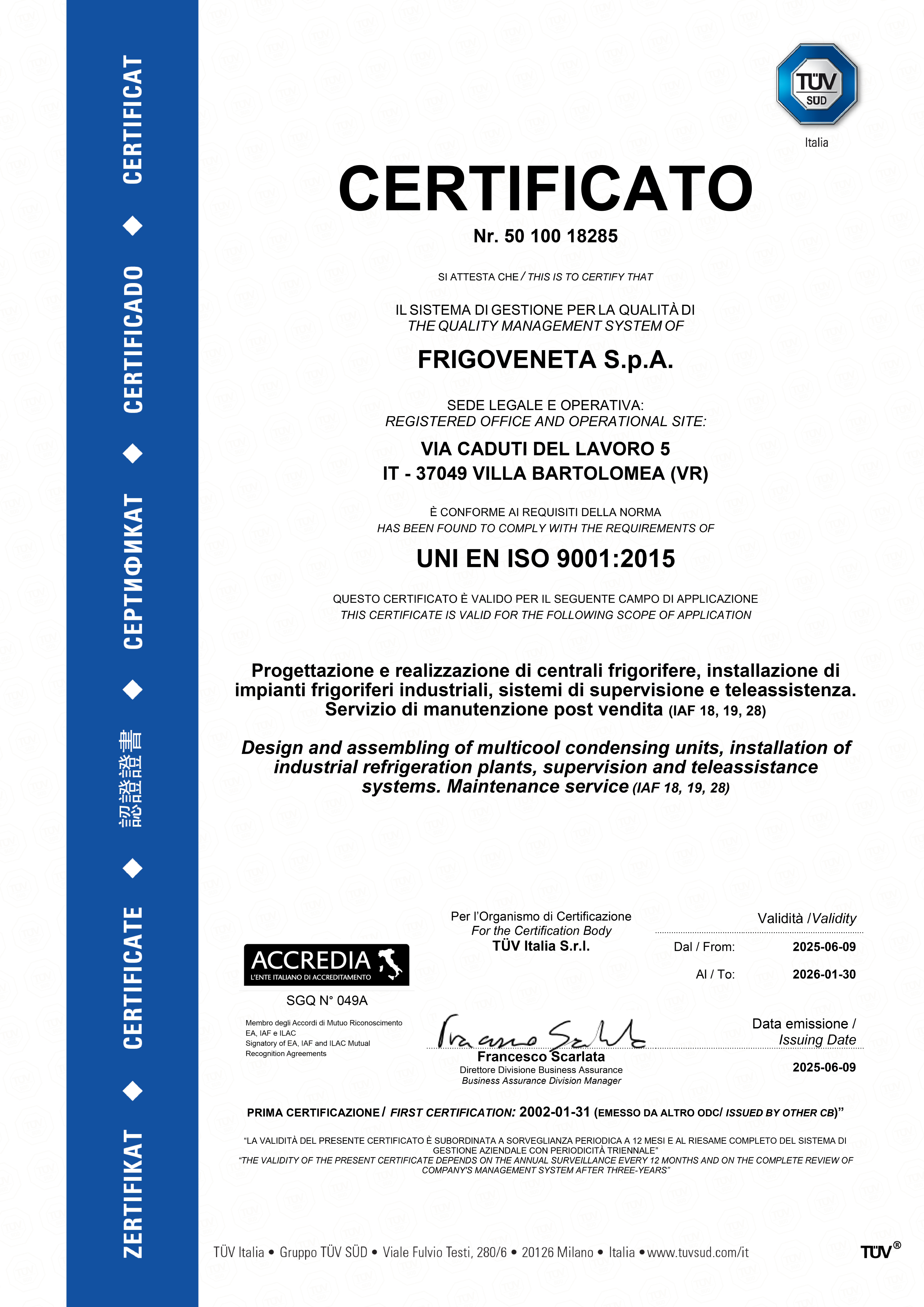 Nel 2002 la costante ricerca di elevati standard produttivi e gestionali si concretizza nel raggiungimento