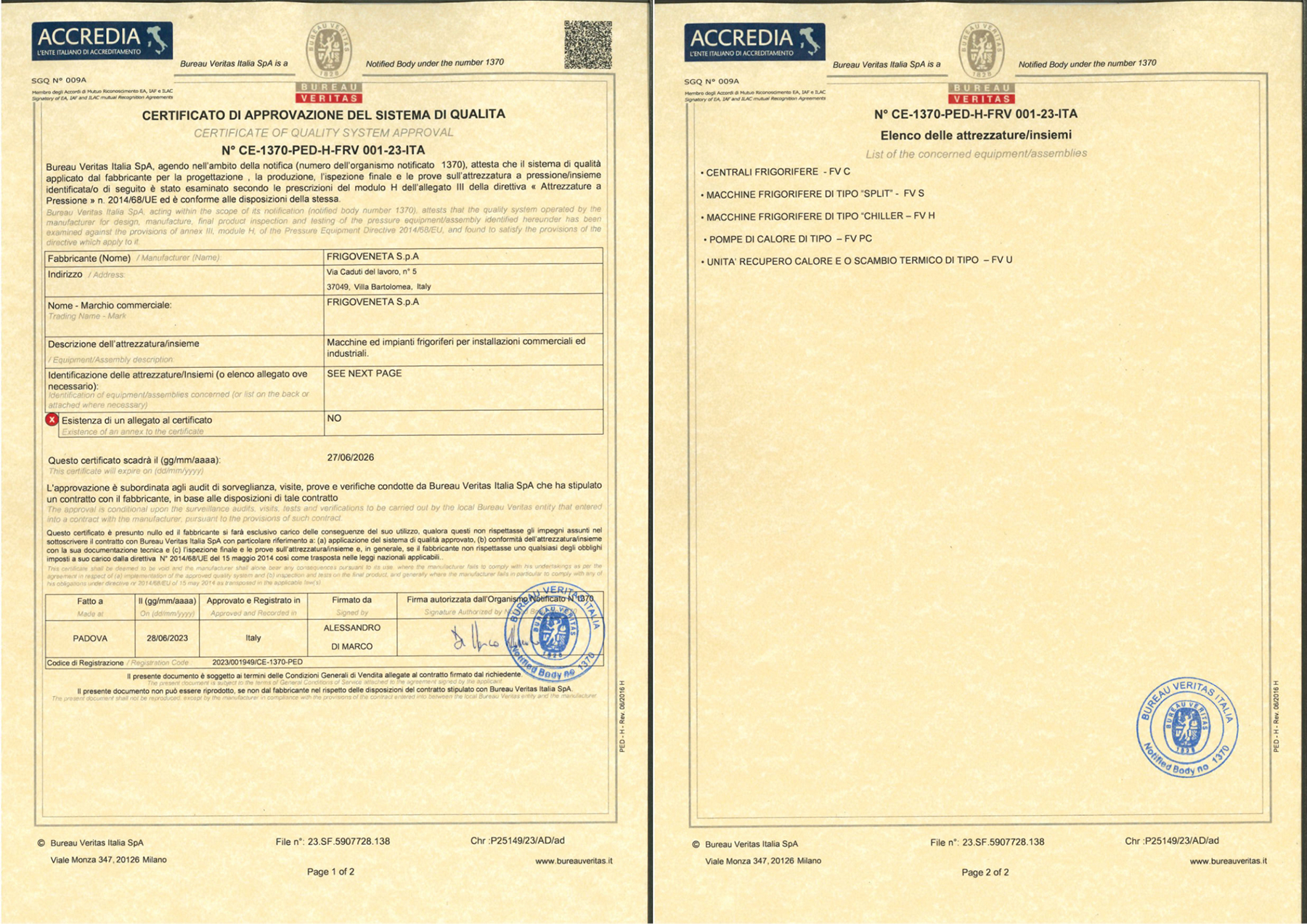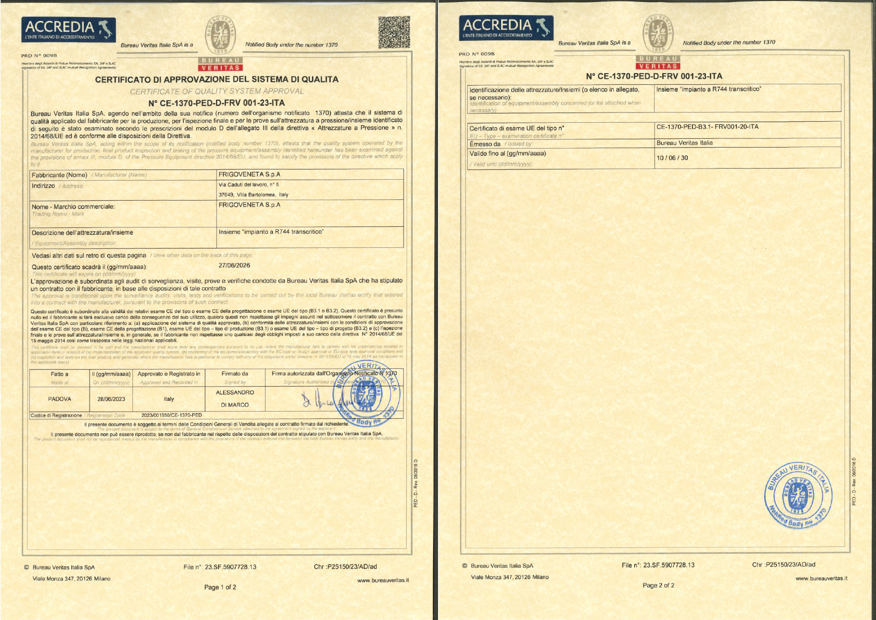 Nel 2013 Frigoveneta spa decide di condividere l’ expertise tecnica maturata e viene riconosciuta da Bureau