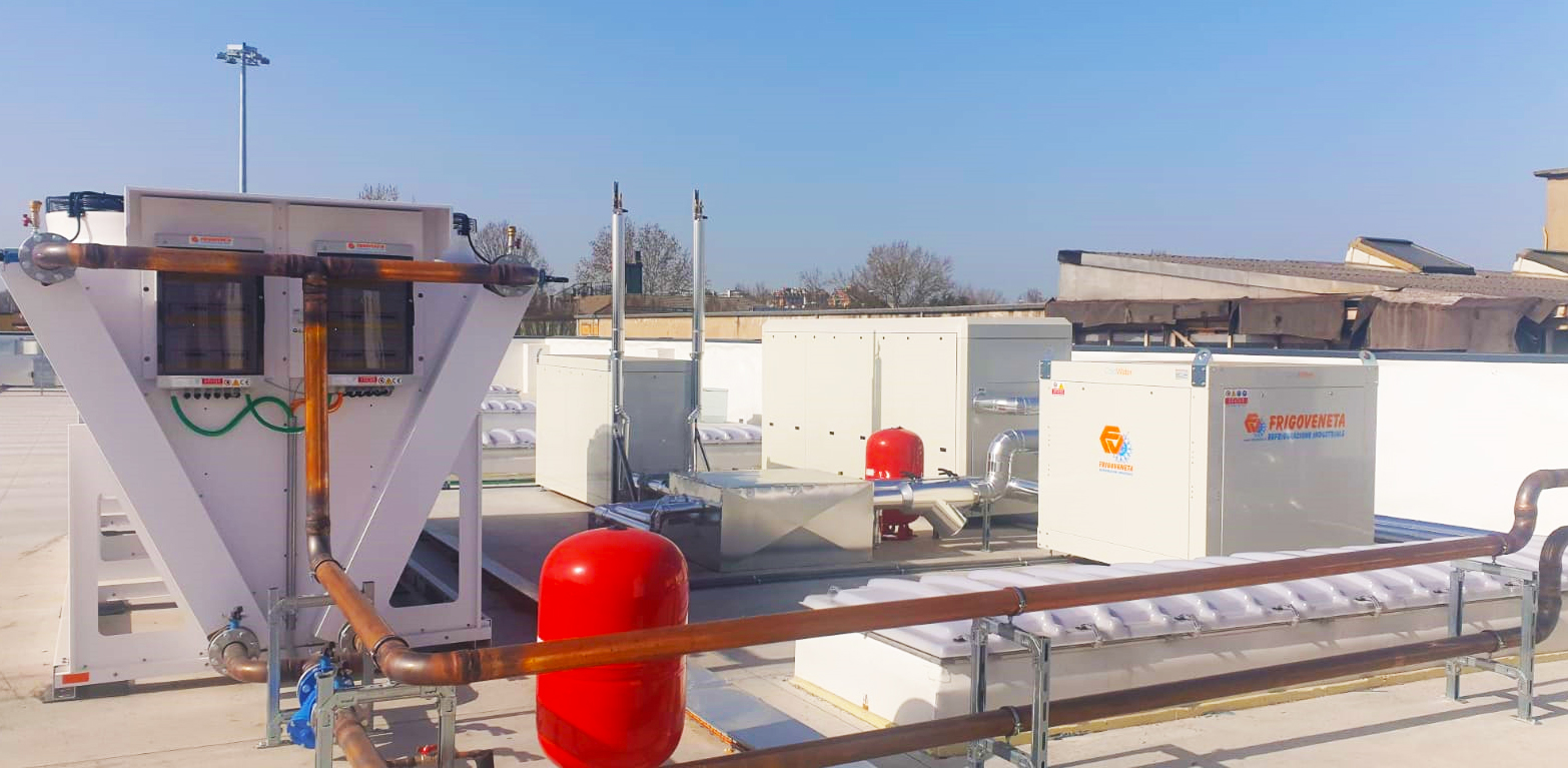 Le utenze TN sono servite da un chiller a R1234ze (GWP < 1 secondo IPCC AR5) che produce acqua glicolata per banchi e celle frigorifere.