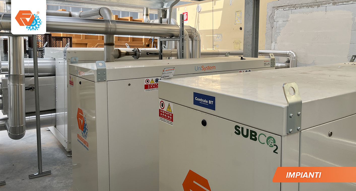 - Centrale BT CO2 con una potenza di circa 48 kW in cascata al chiller TN a servizio dei banchi e delle celle BT