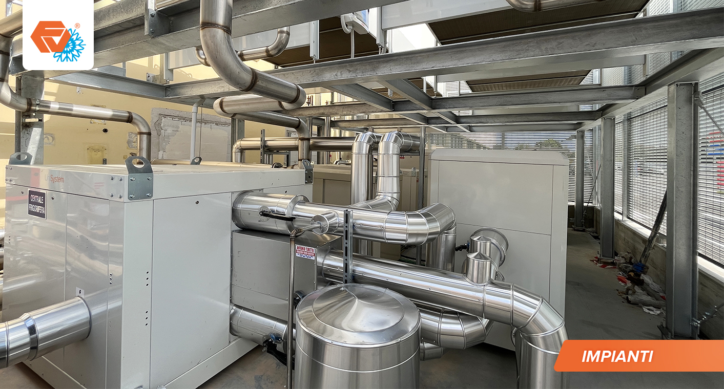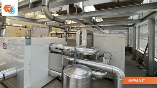 - Chiller TN con una potenza di circa 300 kW per la produzione di acqua refrigerata da fornire ai banchi e alle celle TN con annesso sistema di recupero di calore Unicalor